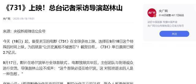《731》全球上映仅1天,网上差评不断,央视发文力挺,句句戳心